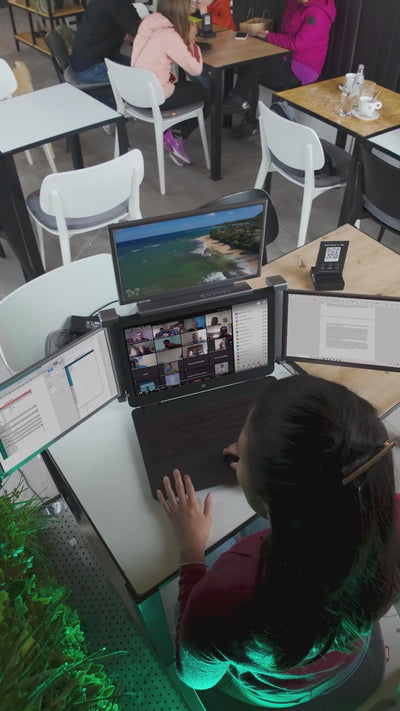The World's First One Cable Portable Quad Monitor. Offering perfect extended monitor solution for laptop users