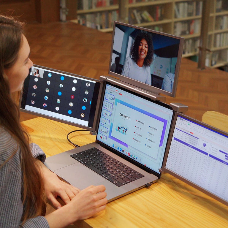 Step into the future with the Flex Max 14”, our latest portable triple-monitor system designed for all Mac and Windows laptops.