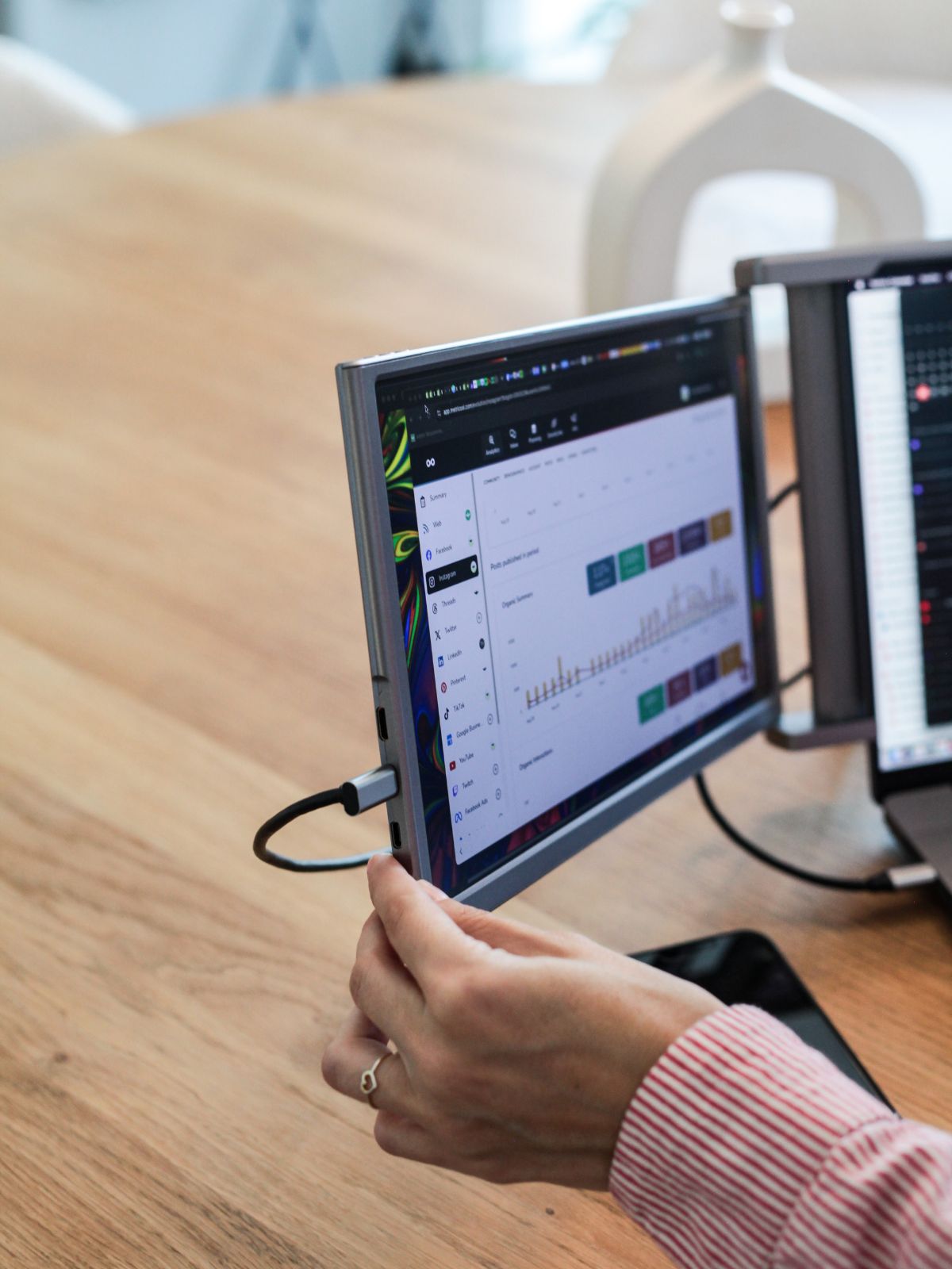 In concrete terms, our portable monitors work with any laptop equipped with one or two USB 3.0 ports.