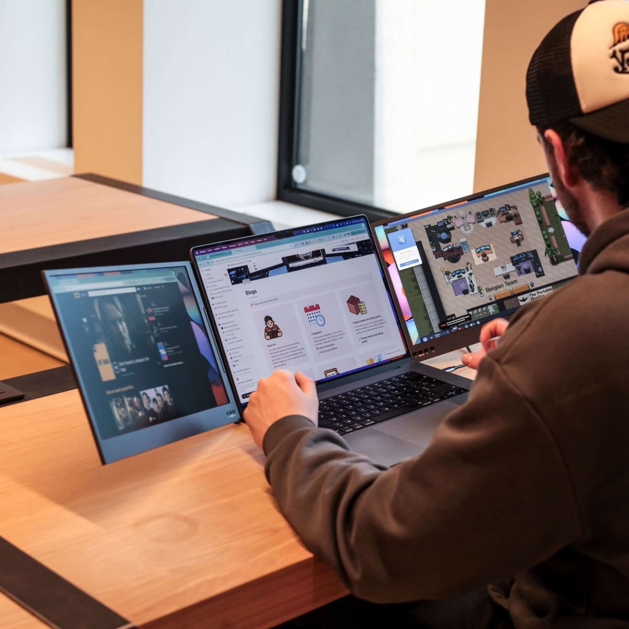 Step into the future with the Flex Max 14”, our latest portable triple-monitor system designed for all Mac and Windows laptops.